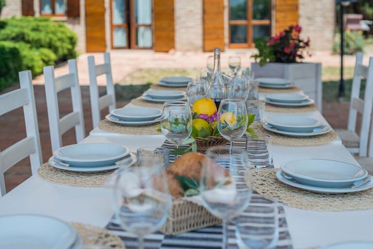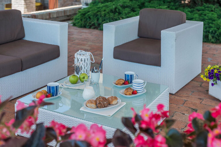 ACCOMMODATION FACILITIES – Villa Monica is a beautiful private villa with pool in Le Marche located at few minutes from San Costanzo and at only 9 Km to the Adriatic Coast. Born from the family agriturismo of the owners, this villa is set in a calm and intimate background and was furnished with taste and comfort. The location is perfect to spend relaxing holidays enjoying the scenic landscapes of Le Marche countryside. Moreover, being close to the sea and the city of Fano it gives the opportunity to go for excursions, do shopping in famous brands’outlets and have a good time in one of the sea front bars and restaurants. The property, which is entirely fenced-in, is characterised by a tidy garden and a lovely pool with panoramic view. The villa also offers wide outdoor living spaces to have unforgettable dinners.