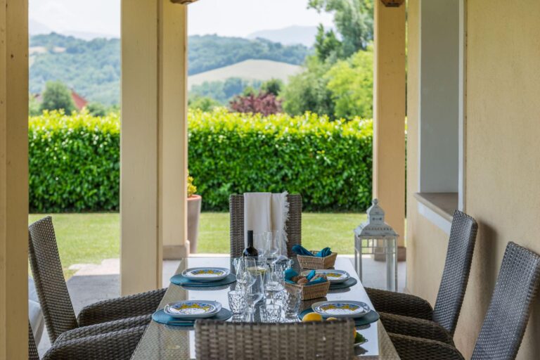 ACCOMMODATION FACILITIES – Villa Margot is a stunning holiday home nestled in lush greenery, just a stone’s throw from Acqualagna, the renowned home of prized truffles and authentic culinary flavors of Le Marche region. Here, every space tells a story of balance between nature, design and hospitality. The contemporary and sophisticated style of the furnishings blends harmoniously with the peaceful surrounding landscape. Large windows flood the interiors with beautiful natural light, highlighting the fine materials and finishes that bring warmth and personality to the property. The private pool with Roman stair entrance is framed by a well-maintained garden, equipped with sun loungers and parasols—perfect for moments of pure relaxation under the sun. The outdoor porch is ideal at any time of day, ready to host everything from peaceful morning breakfasts to dinners under a golden sunset. Whether you’re exploring nearby villages, tasting local cuisine, or simply slowing down and reconnecting with nature, Villa Margot is the perfect starting point.