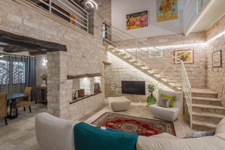PRIVATE STRUCTURE (RENT ONLY) – Villa Azzurra is the result of the reconstruction of a typical rural farmhouse of Le Marche countryside. This old barn has been transformed into a charming holiday home able to accommodate four adults and one child. The recent renovation reflects the owners’ passion for reusing. With care and attention, they have given new life to objects and materials. Each brick has been restored and reintegrated into the new structure with modern design elements, thus creating a perfect combination of tradition and modernity.